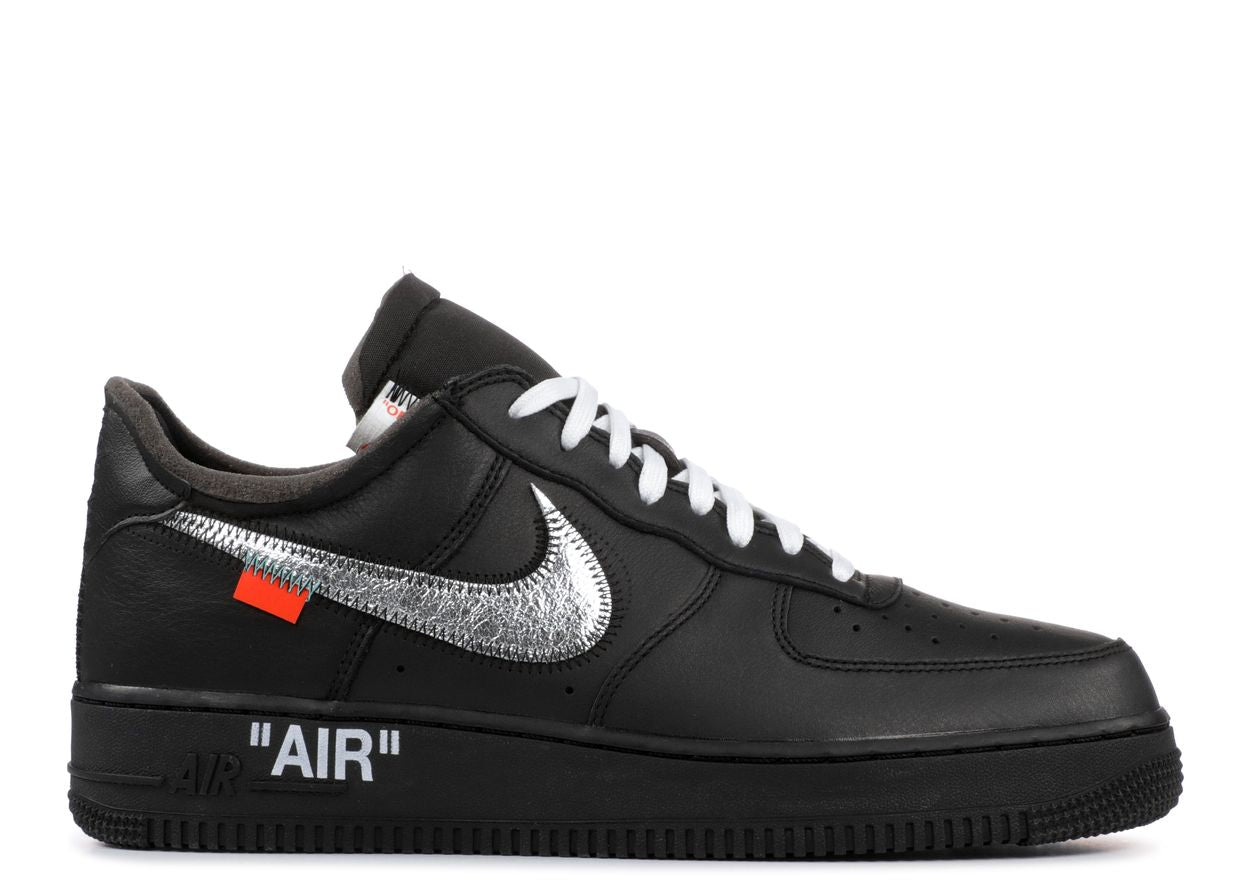 Designed by Virgil Abloh, the OFF-WHITE x Air Force 1 Low '07 'MoMA' was first unveiled during Art Basel Miami Beach in 2016. In January 2018, the Museum of Modern Art (MoMA) released the sneaker exclusively to commemorate its “Items: Is Fashion Modern?” exhibition. The design features a black leather upper with a metallic silver swoosh, accented by an orange tab and translucent zip tie. Signature Off-White elements include white text on the side panel, a deconstructed foam tongue, and white laces stamped with black "SHOELACES" branding. The look is completed with a black midsole featuring bold white “AIR” lettering.