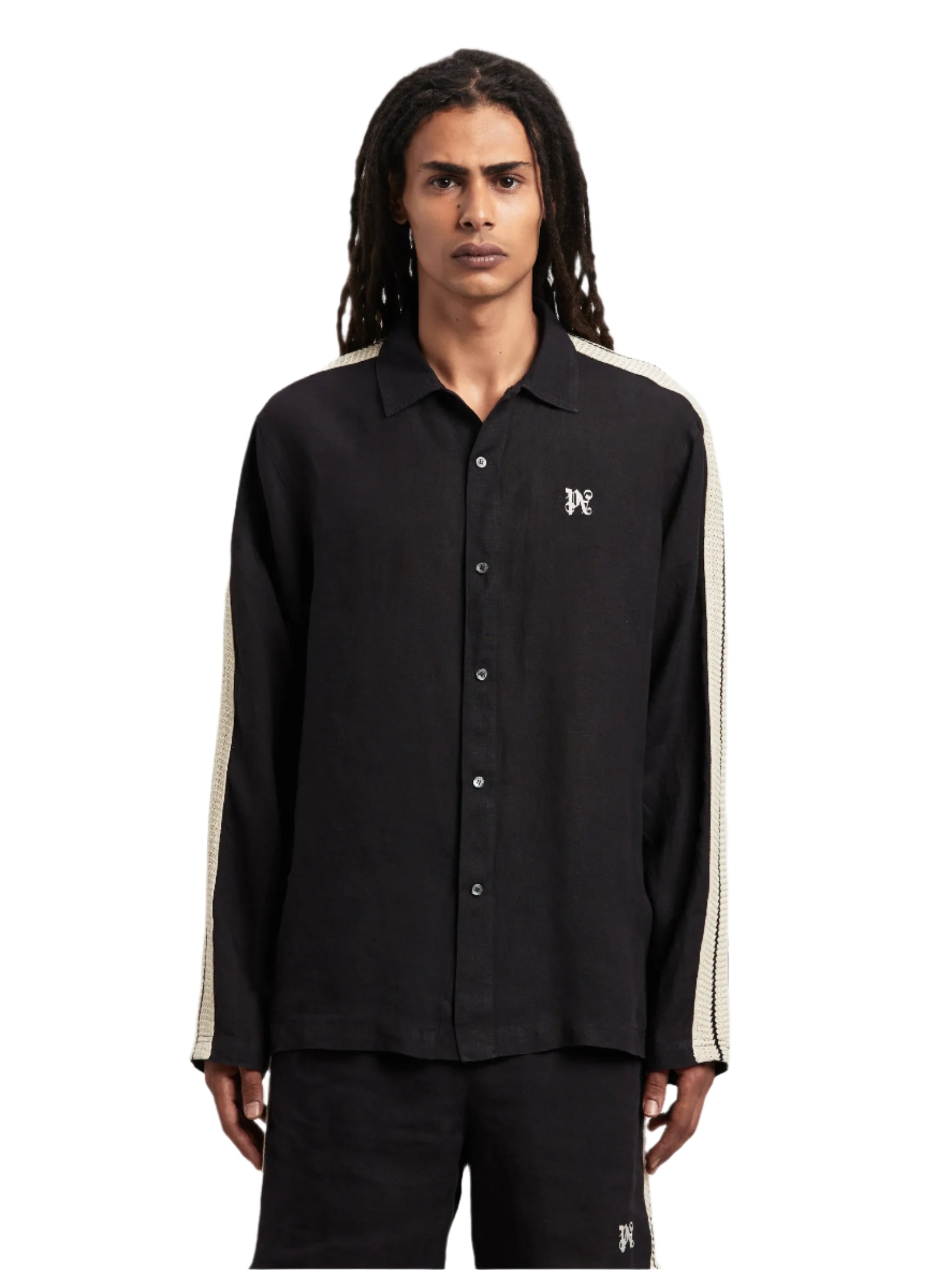 Buy the Palm Angels Linen Monogram Track Polo LS 'Black' today.