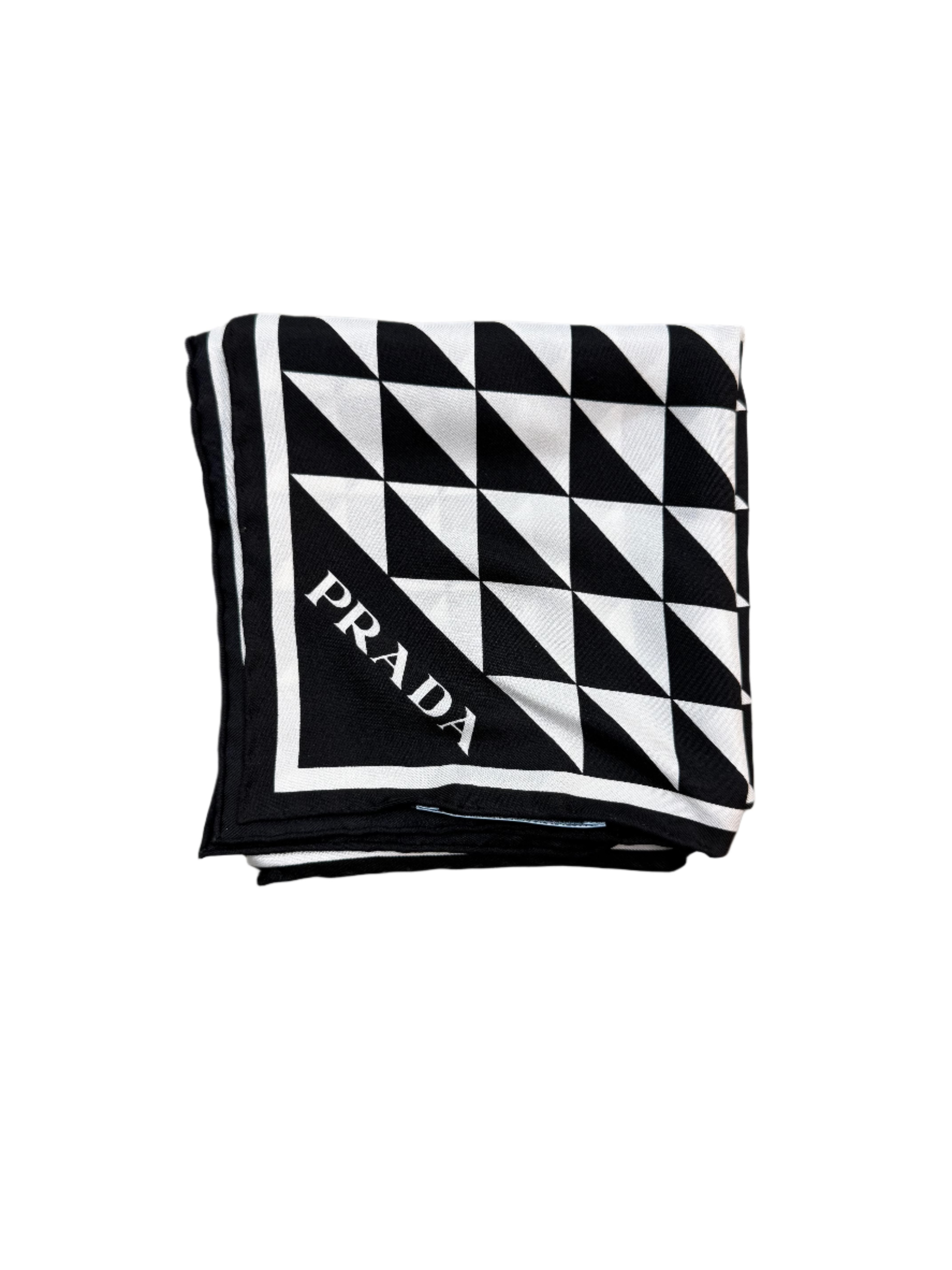 Buy the Prada Triangle Logo Scarf 'Black White' today.