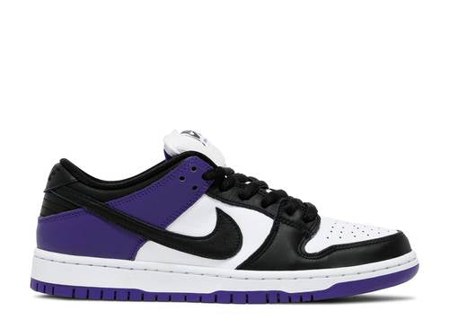 The Dunk Low SB 'Court Purple' features a classic skating design with a white leather base and black overlays on the forefoot, eyestay, and collar. Court Purple accents the heel and rubber outsole, while the sockliner incorporates Zoom Air for cushioning and comfort.