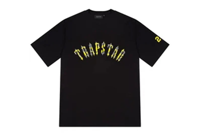 Features the 'TRAPSTAR' arch logo in a striking black and yellow gradient.